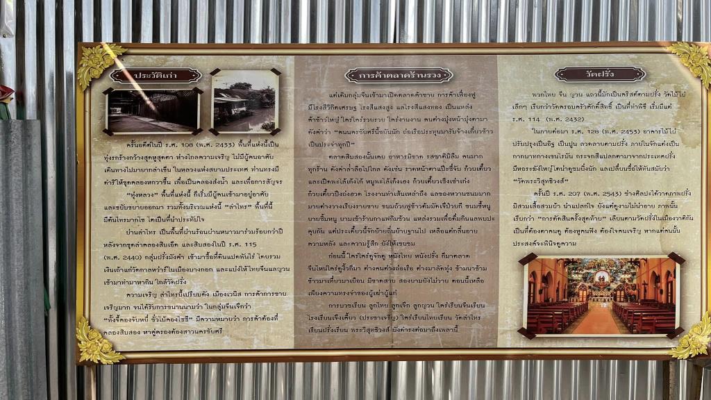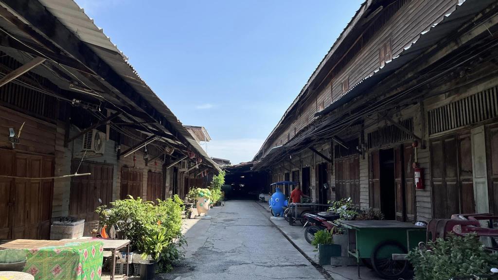 พบว่าเป็นอาคารไม้ 2 ชั้น ถนนตรงกลางมุงหลังคาพอให้กันแดดกันฝน แต่ก็ทรุดโทรมไปตามกาลเวลา บางหลังไร้ผู้คนอยู่อาศัย แต่บางหลังก็อยู่อาศัยตามปกติ